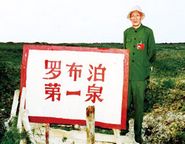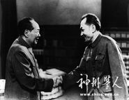 朱光亚(右)与陈毅在视察原子弹基地。