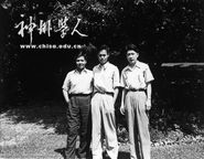 1947年,朱光亚在美国密歇根大学研究生院学习时留影(左起:李政道、杨...
