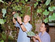 朱光亚晚年和夫人一起摘葡萄