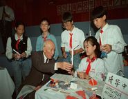 1995年10月20日,朱光亚同志在上海科学会堂观看中学生演示自己动手制作...