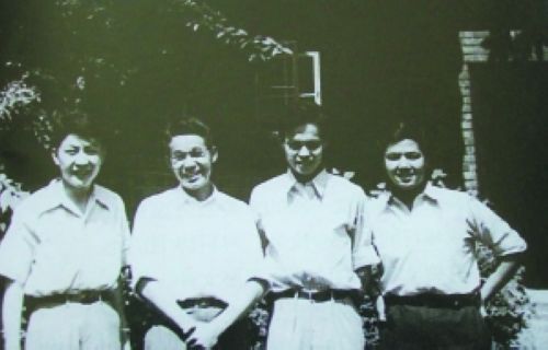 当年,风华正茂的朱光亚(左一)与张文裕、杨振宁、李政道合影。