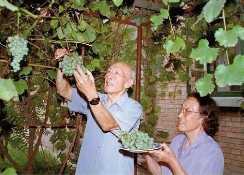 朱光亚晚年和夫人一起摘葡萄