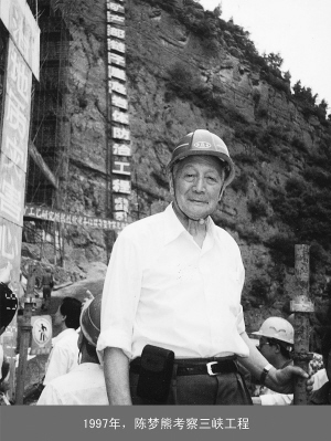 1997年,陈梦熊考察三峡工程