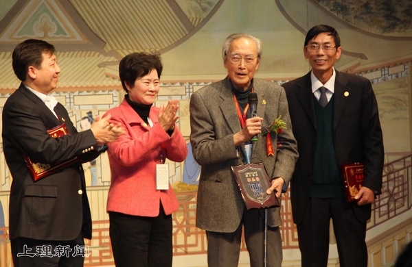 郭慕孙院士接受上海理工大学党委副书记白苏娣颁发的纪念奖牌