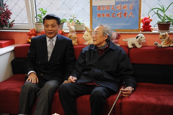 郭慕孙院士与北京二中校长钮小桦亲切交谈