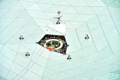 正在安装中的“天眼”最后一块反射面单元。刚摄/光明图片