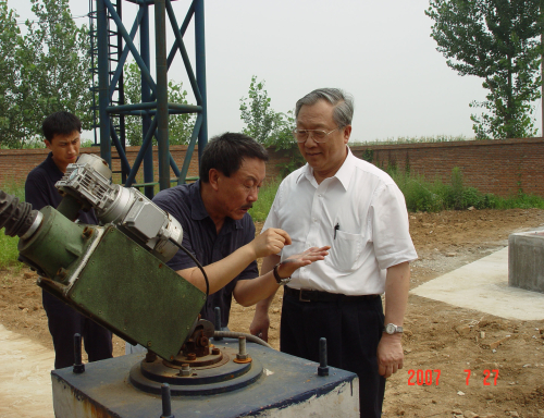 南仁东向时任中科院院长路甬祥介绍FAST密云观测站情况
