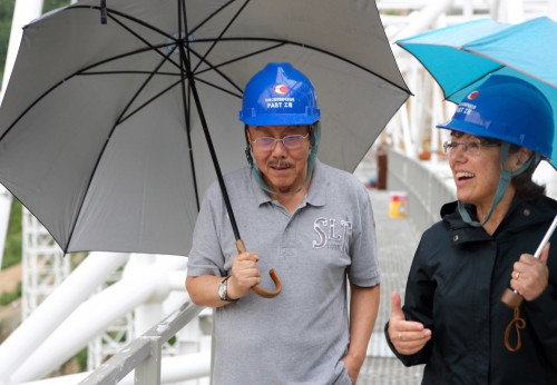 2014年大窝凼施工现场,南仁东陪同外宾
