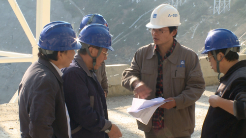 2015年大窝凼施工现场,南仁东与工程技术人员讨论