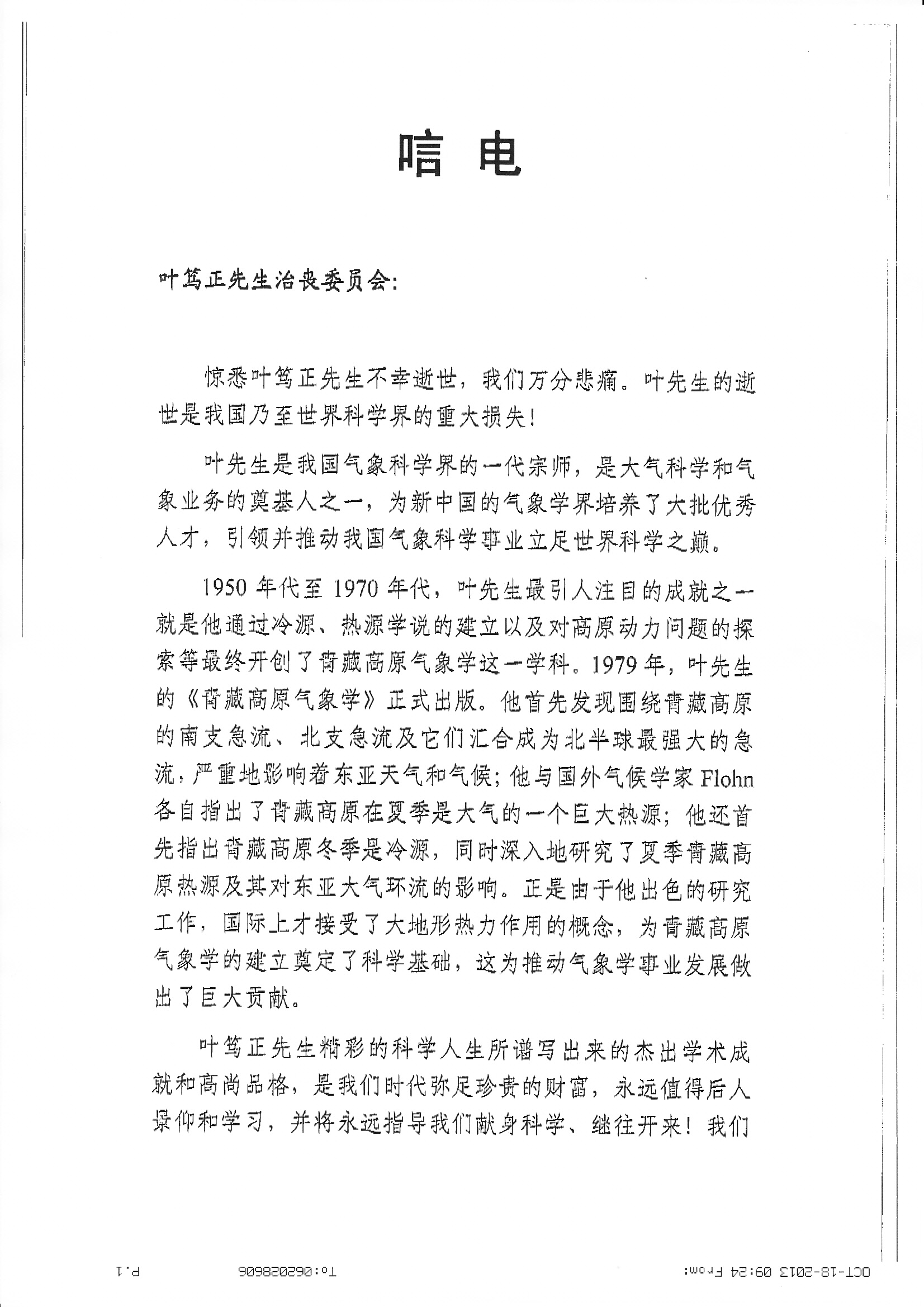 唁电