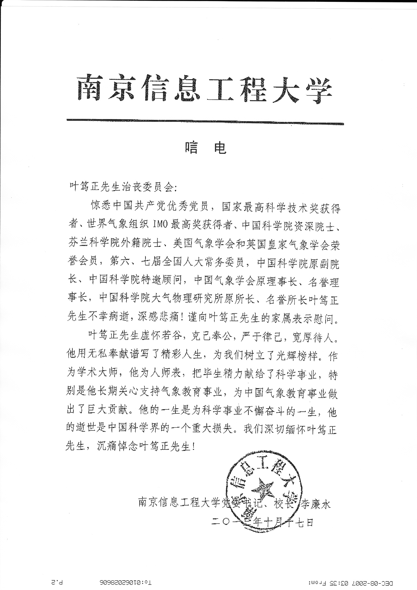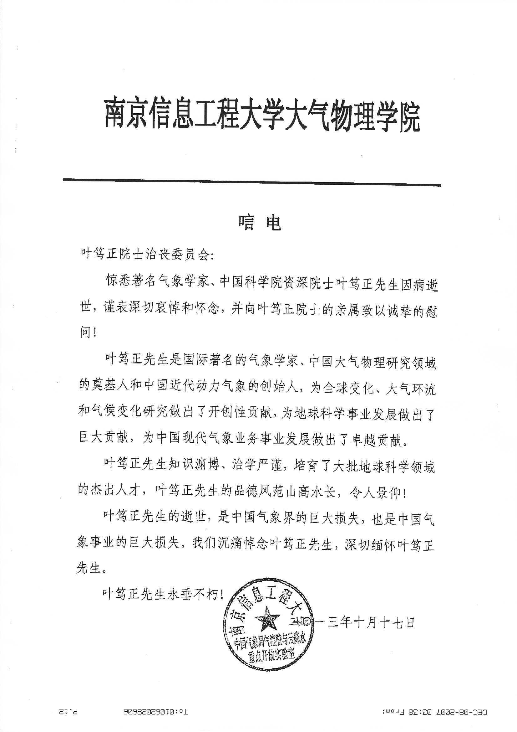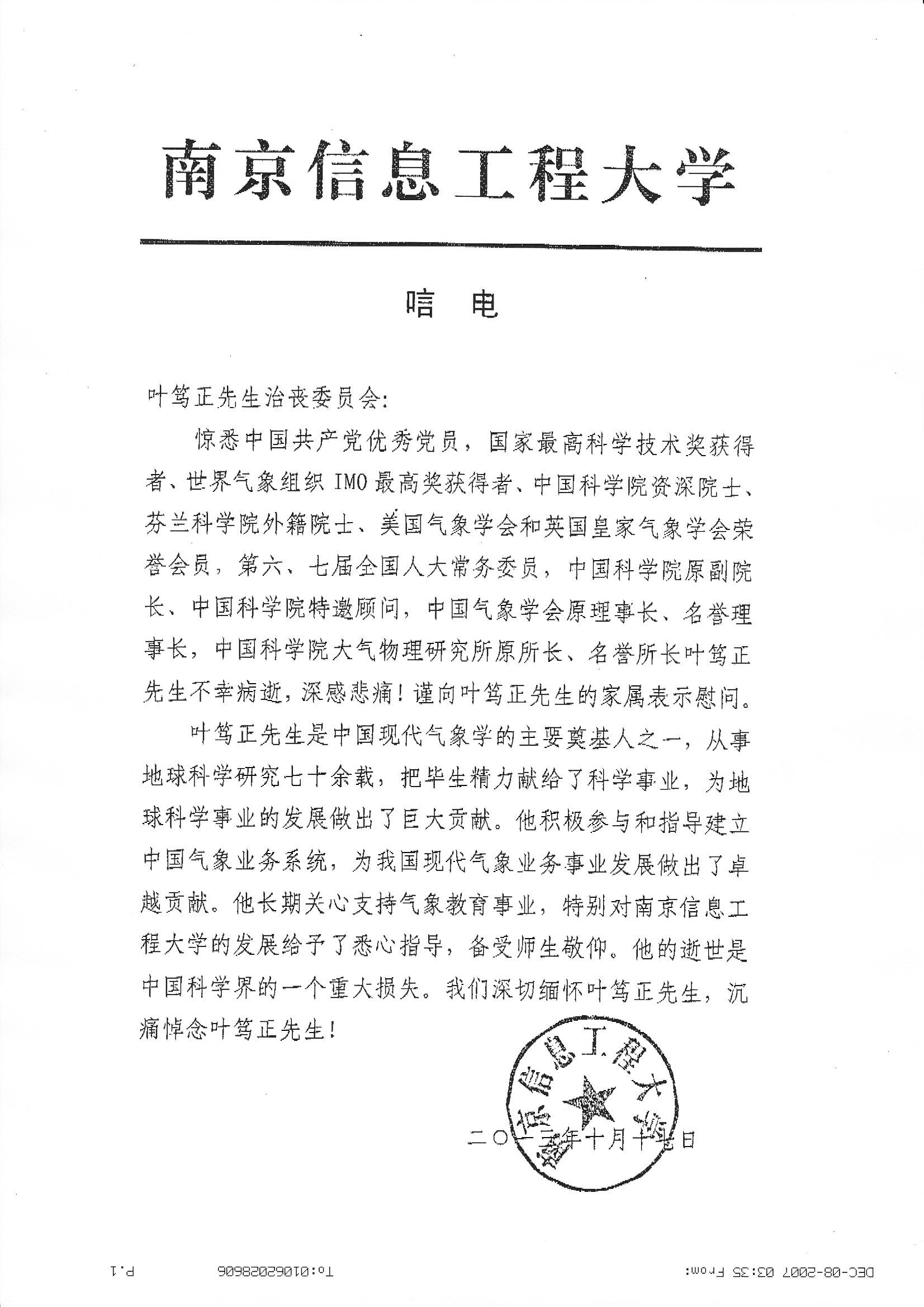 唁电