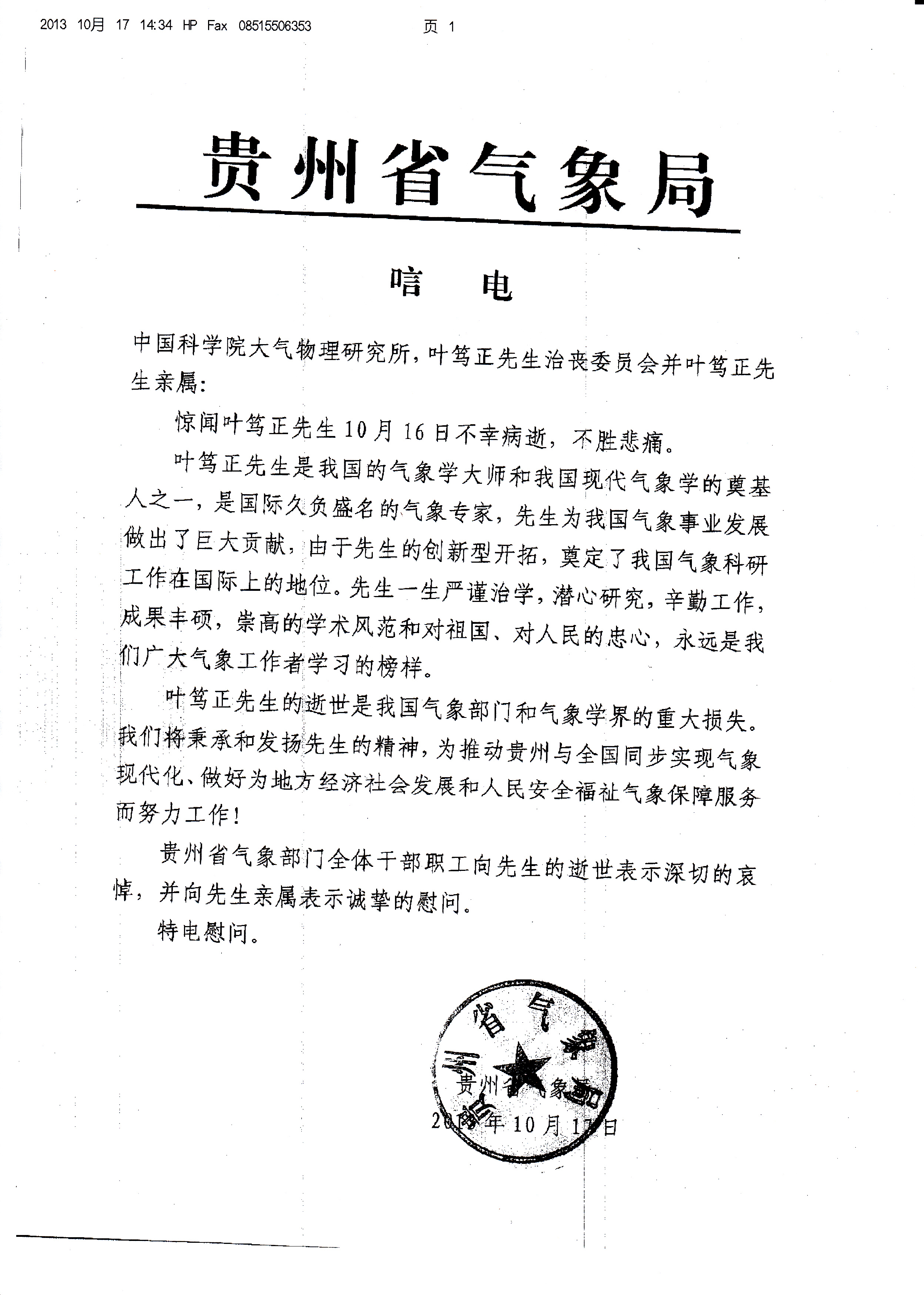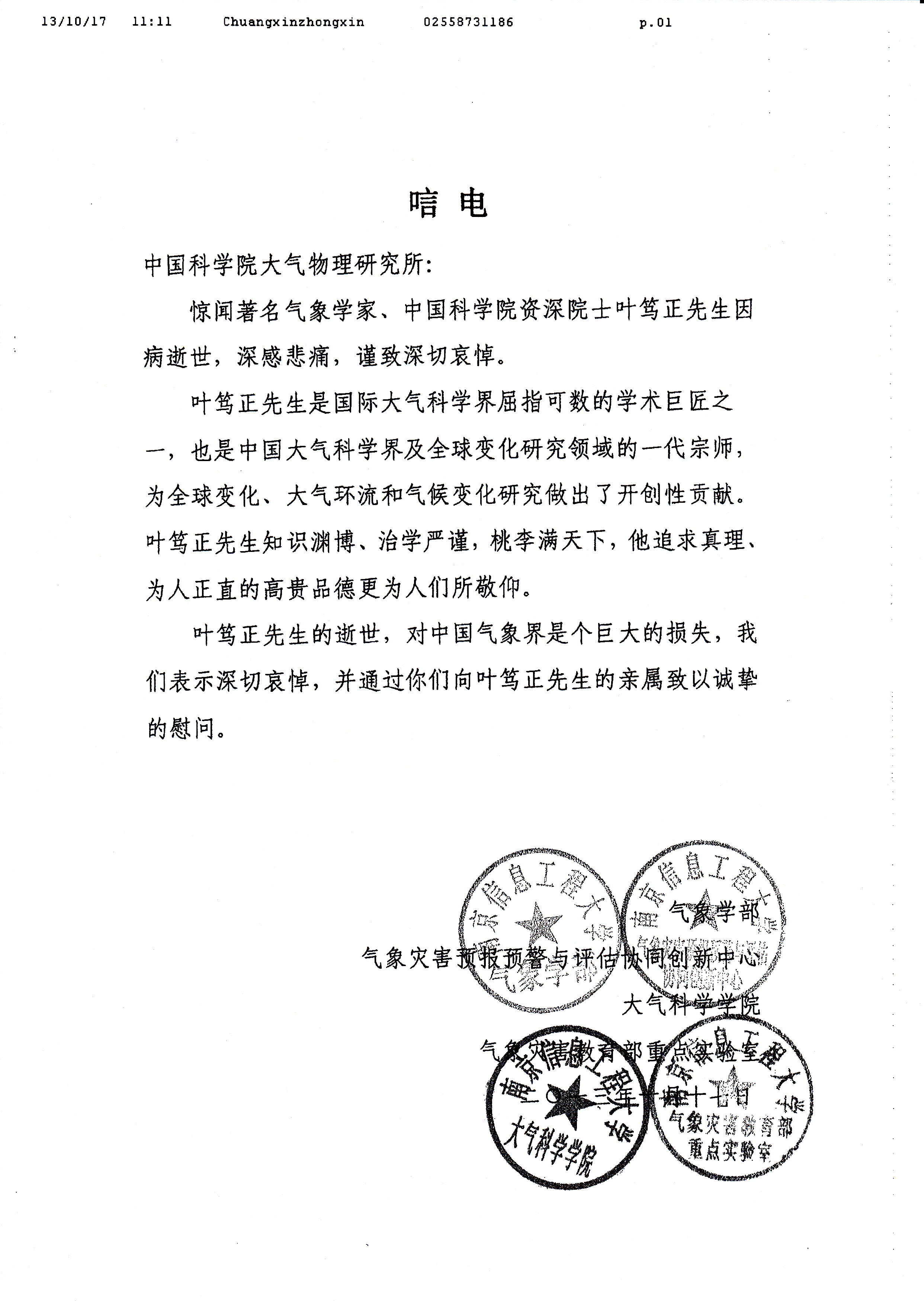 唁电