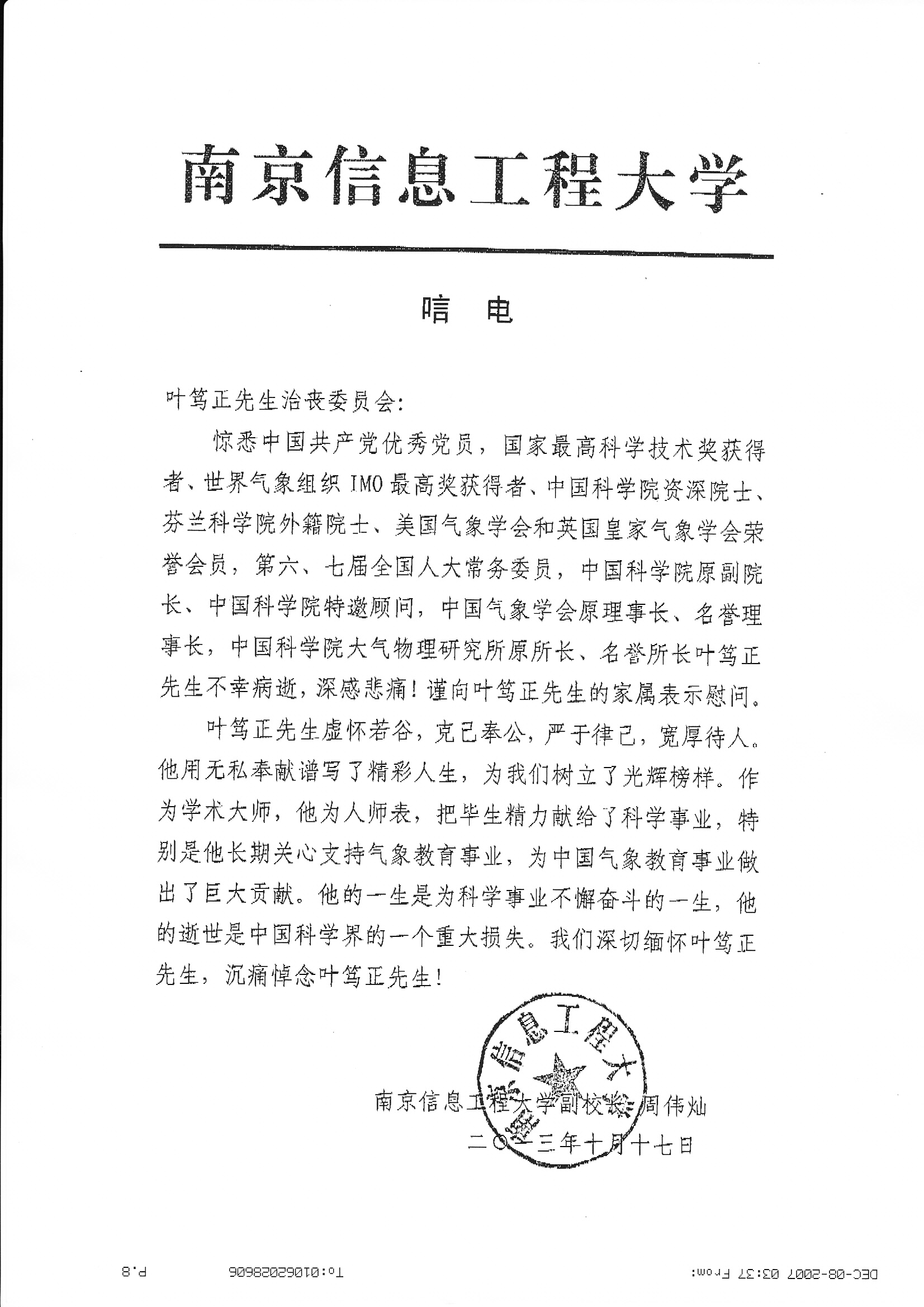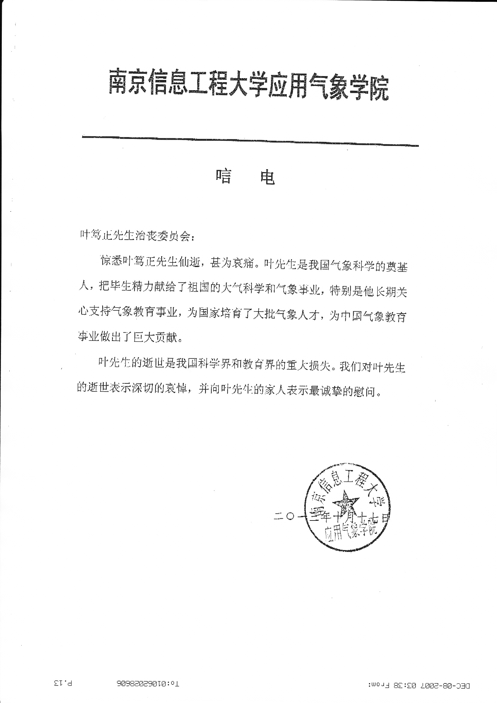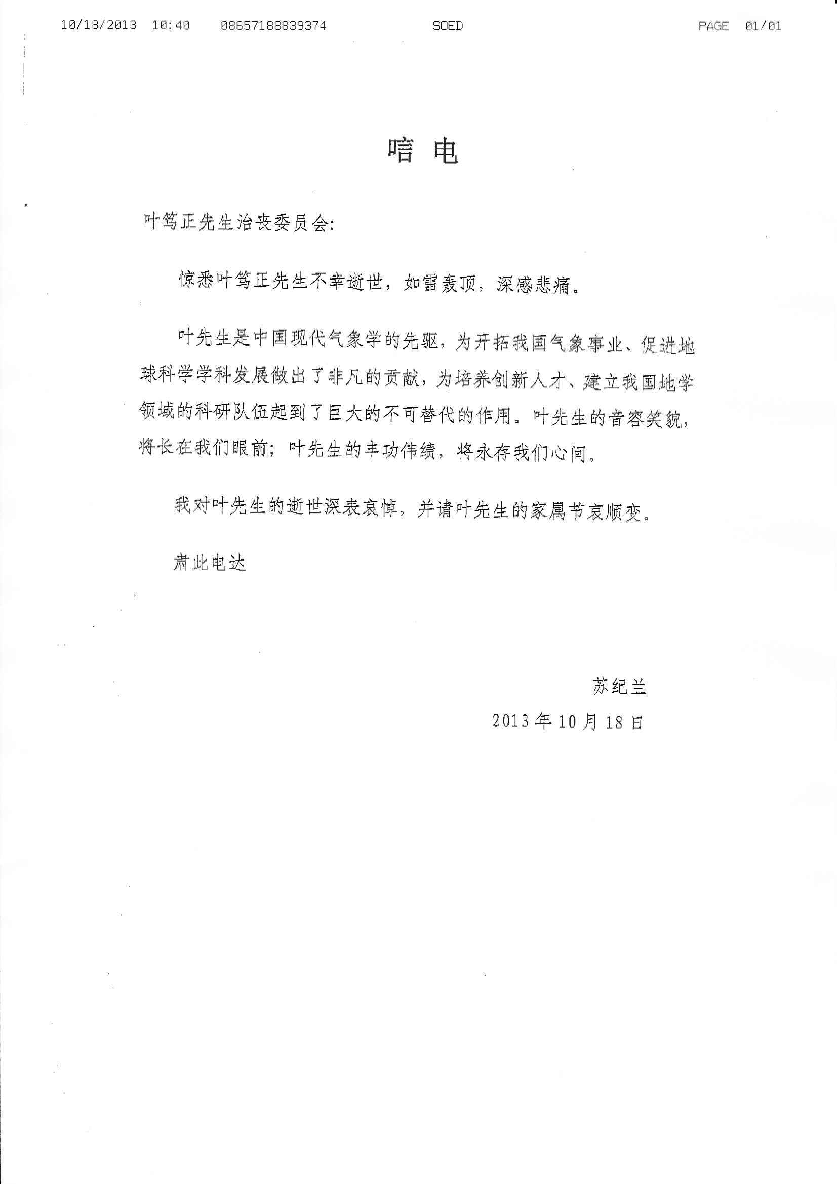 唁电