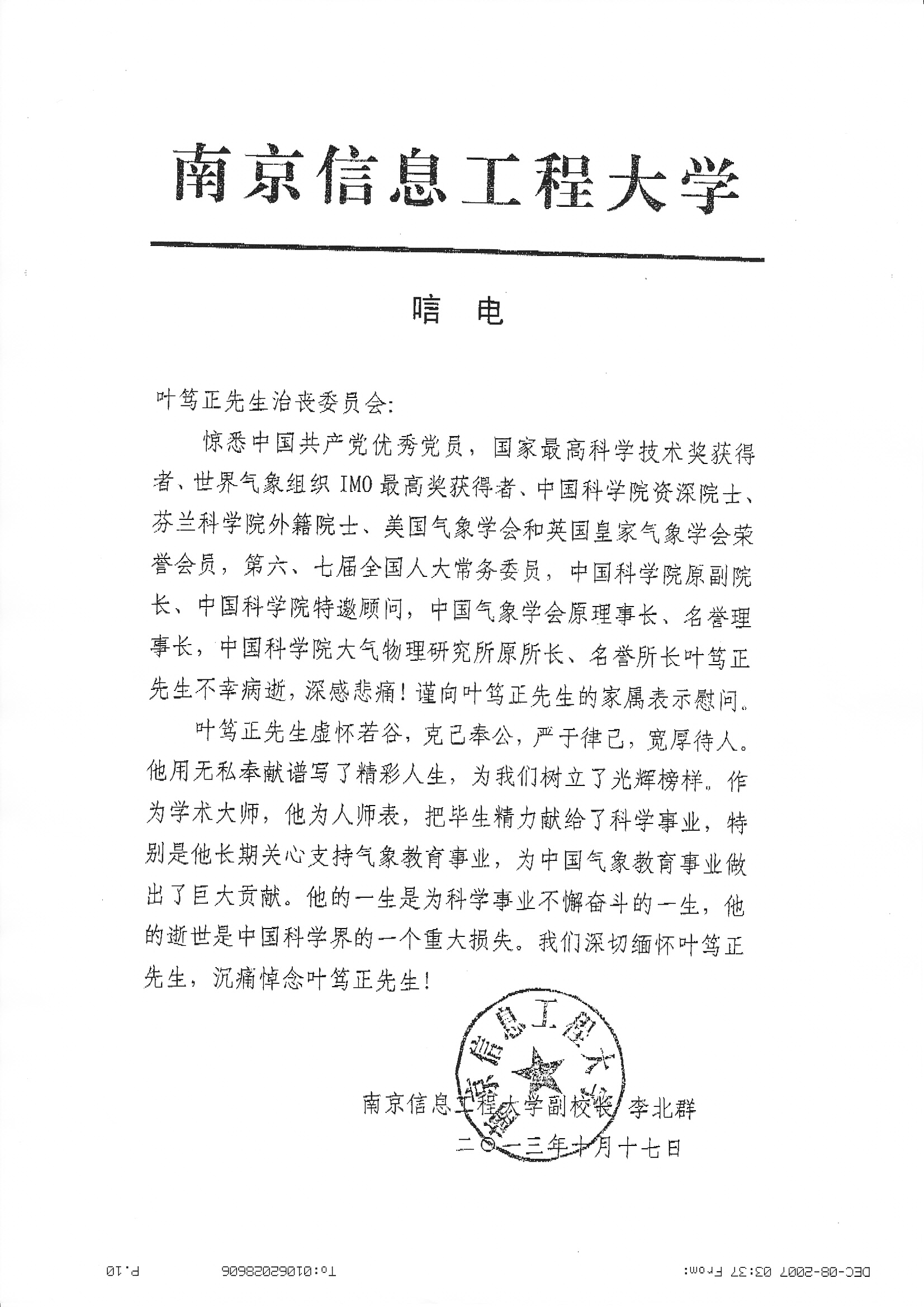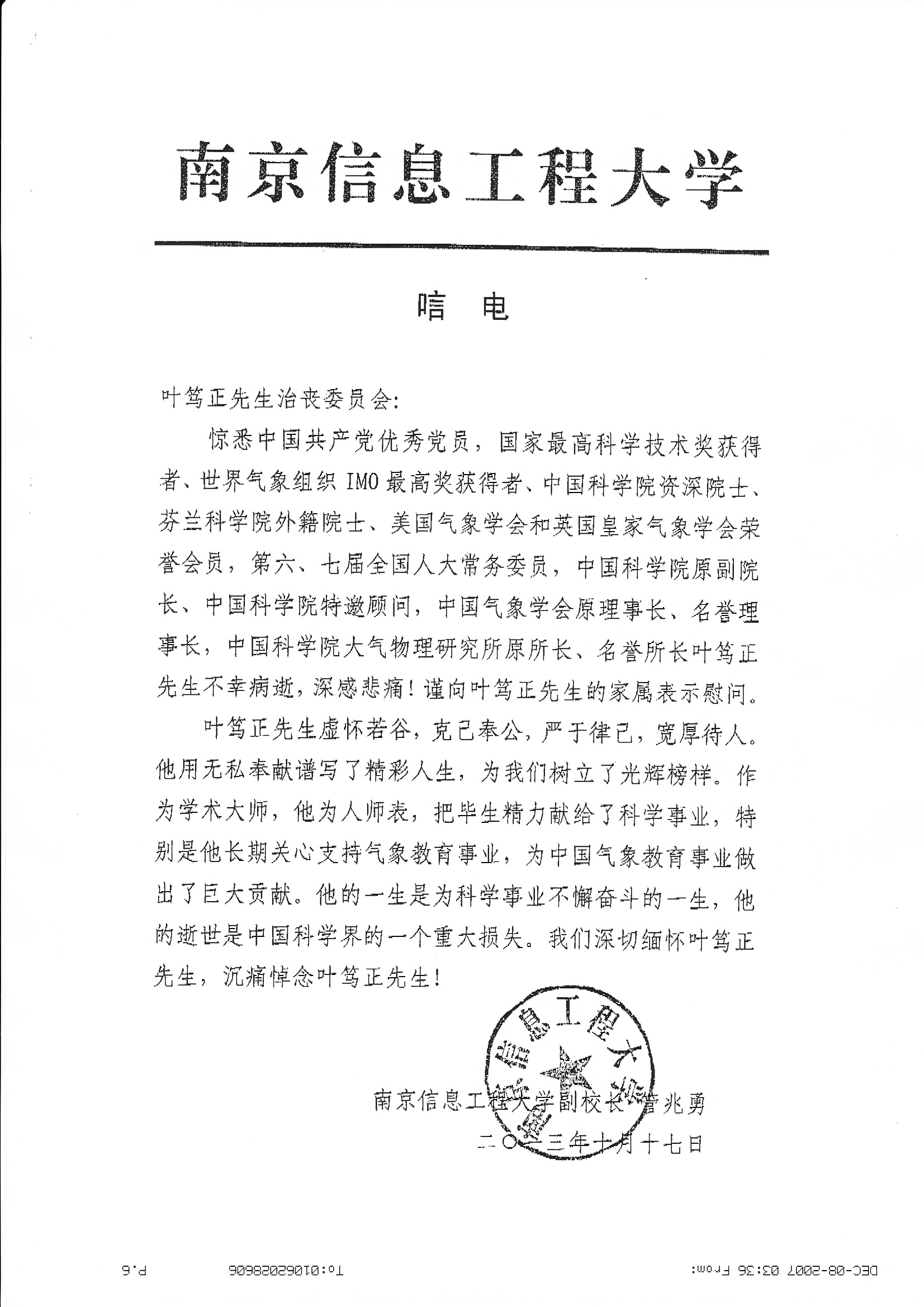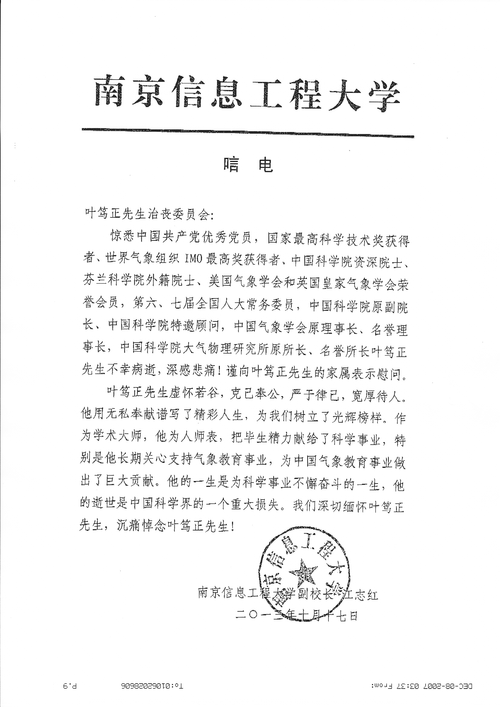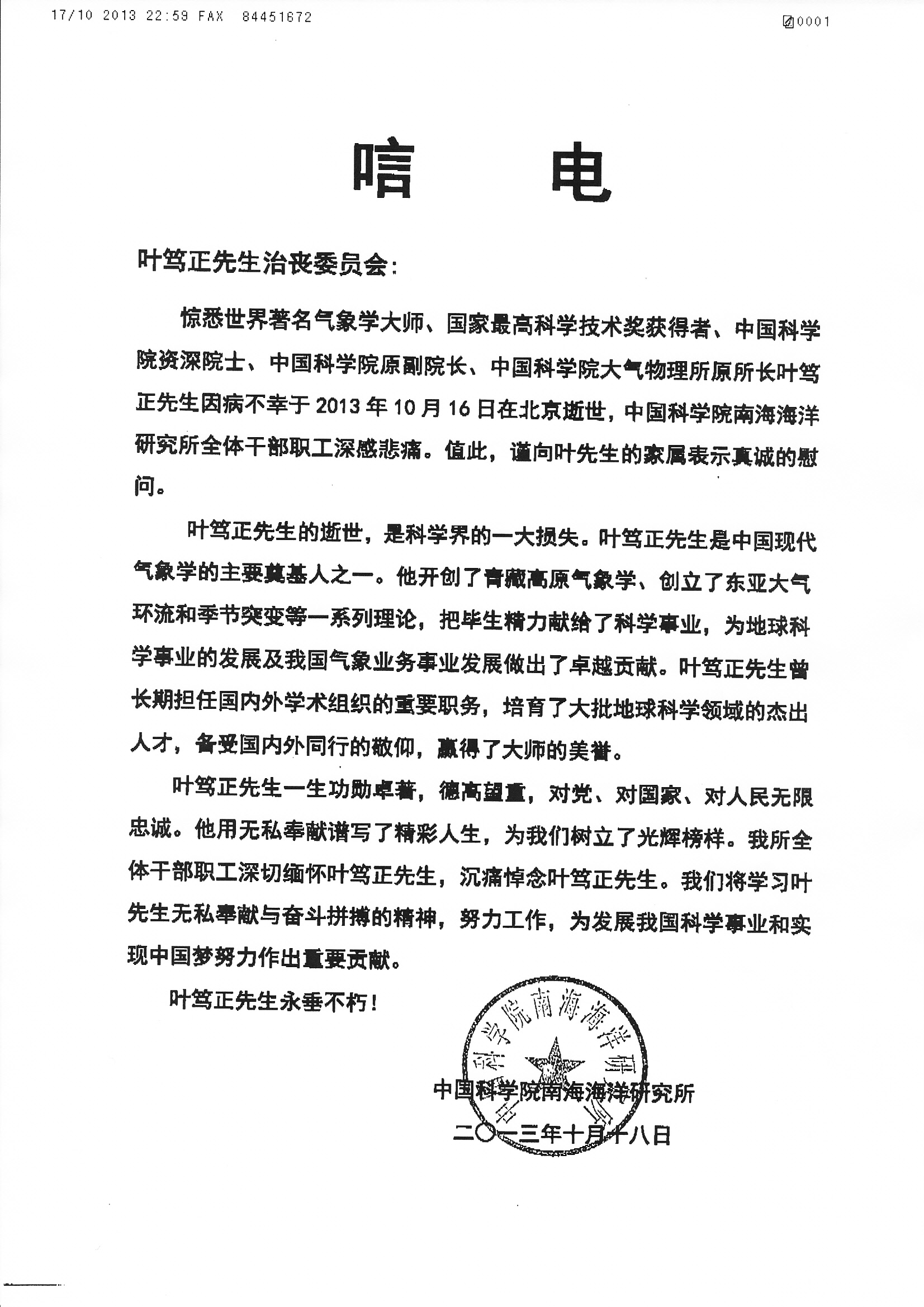 唁电