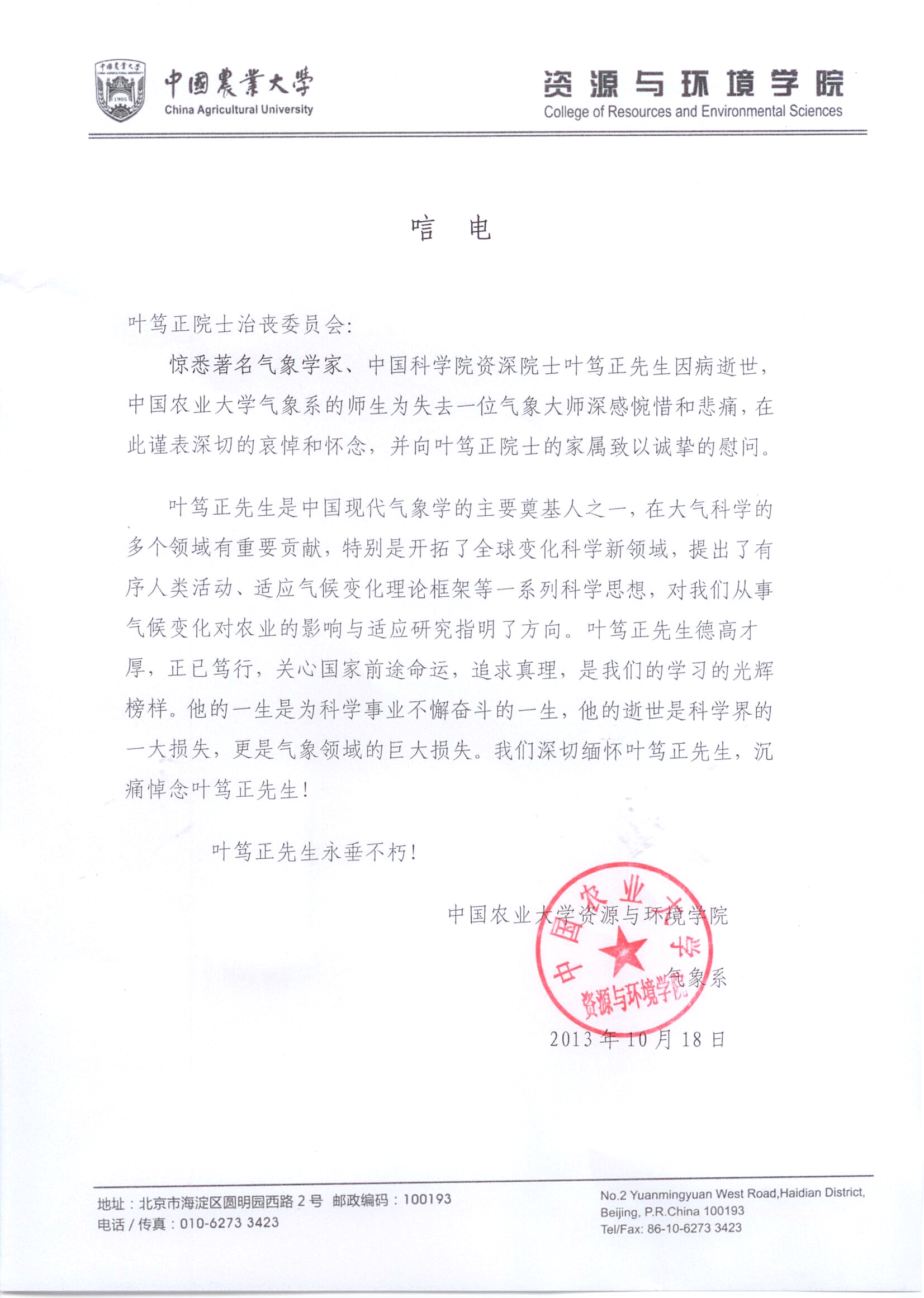 唁电