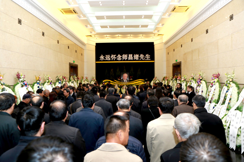 院长、党组书记白春礼,副院长、党组成员李静海、阴和俊,党组副书记方新,副秘书长曹效业,师昌绪先生的亲友、同事、学生及社会各界人士参加了告别仪式。大家手中拿着师昌绪先生的生平纪念册,胸前佩戴白花,表情肃穆,慢慢步入灵堂,送敬爱的师昌绪先生最后一程。