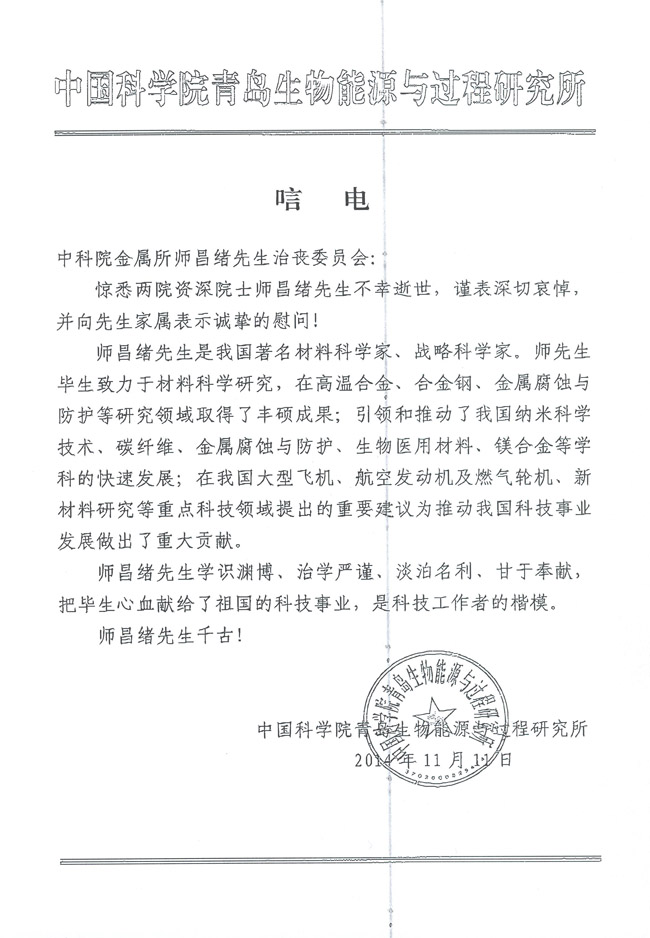 午夜av 青岛生物能源与过程研究所致唁电