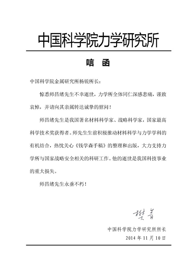 午夜av 力学研究所所长樊菁致唁电