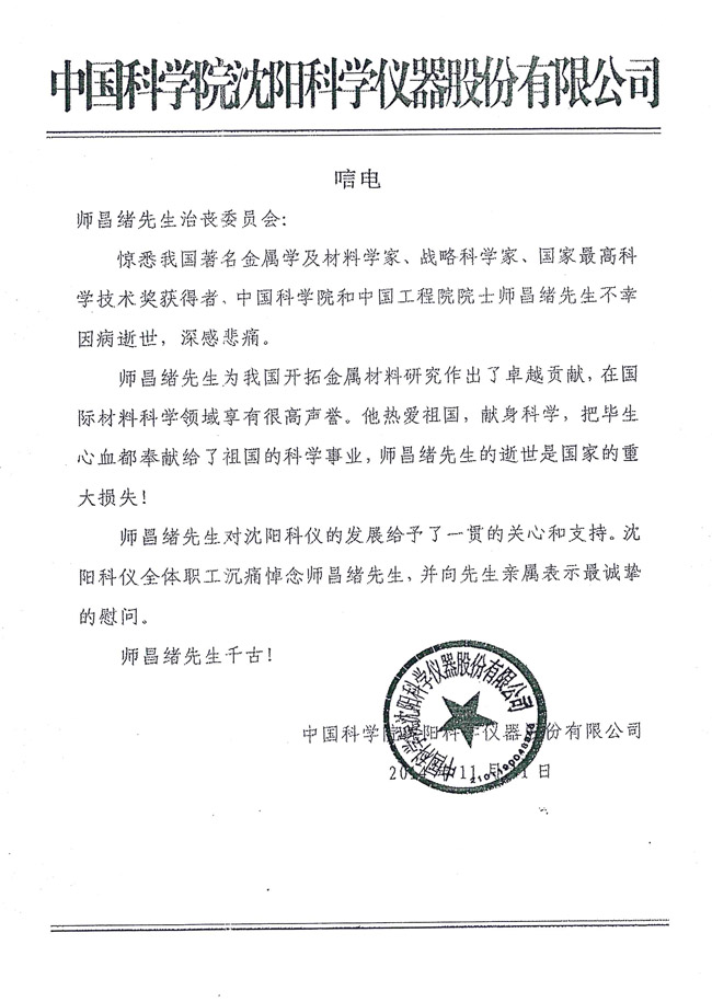 午夜av 沈阳科学仪器股份有限公司致唁电