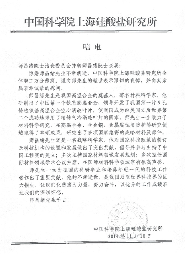 午夜av 上海硅酸盐研究所致唁电