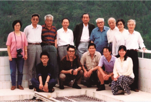 1996年,国家攀登计划项目:“机器证明机器应用”专家委员会合影,前排左起:李子明、刘卓军、许忠勤、吴可、周代珍;后排左起:黄且圆、吴文达、冯果忱、杨路、胡国定、吴文俊、程民德、吴是静、梁崇高