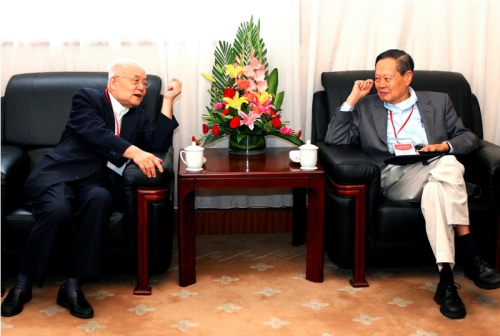 2006年,吴文俊荣获邵逸夫数学科学奖,图为杨振宁与吴文俊交谈