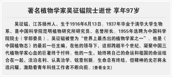 【扬州新闻】扬州籍著名科学家吴征镒辞世