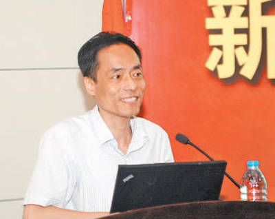 2015年8月,王逸平在新生入所教育中介绍实验室安全规范。中科院上海药物研究所提供