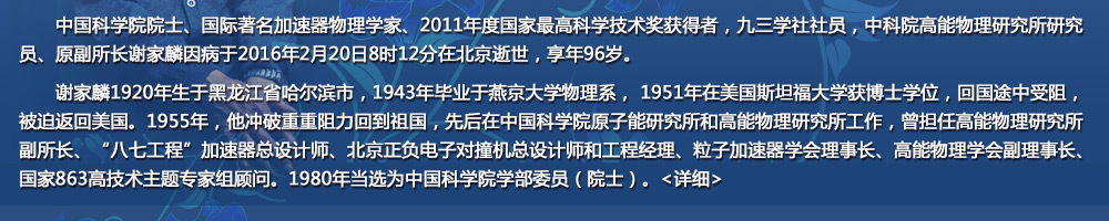 在50多年的科学生涯中,谢家麟院士主要从事先进加速器技术研究,取得了令人瞩目的科学成就,是国际著名的物理学家,我国粒子加速器事业的开拓者和奠基人。