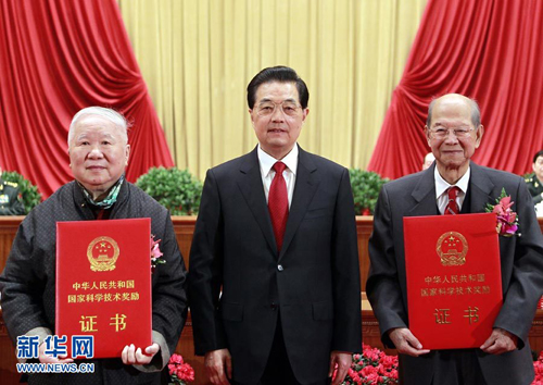 胡锦涛为谢家麟和吴良镛颁发国家最高科技奖