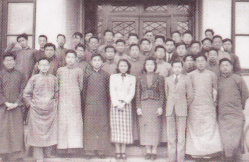1940年在北京燕京大学物理楼前物理系全体员工合影(二排右三谢家麟)