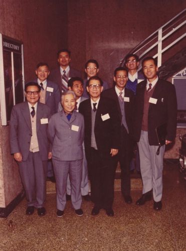 1980年,高能加速器考察组在美国LBL研究所(谢家麟,前右一)