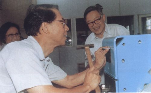 1986年8月,为高能所研制的对撞机上第一块聚焦磁铁钉上标牌
