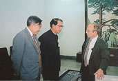 1994年,在北京召开的加速器会议期间与王淦昌(右...