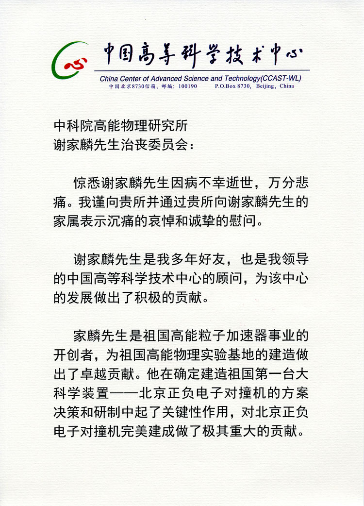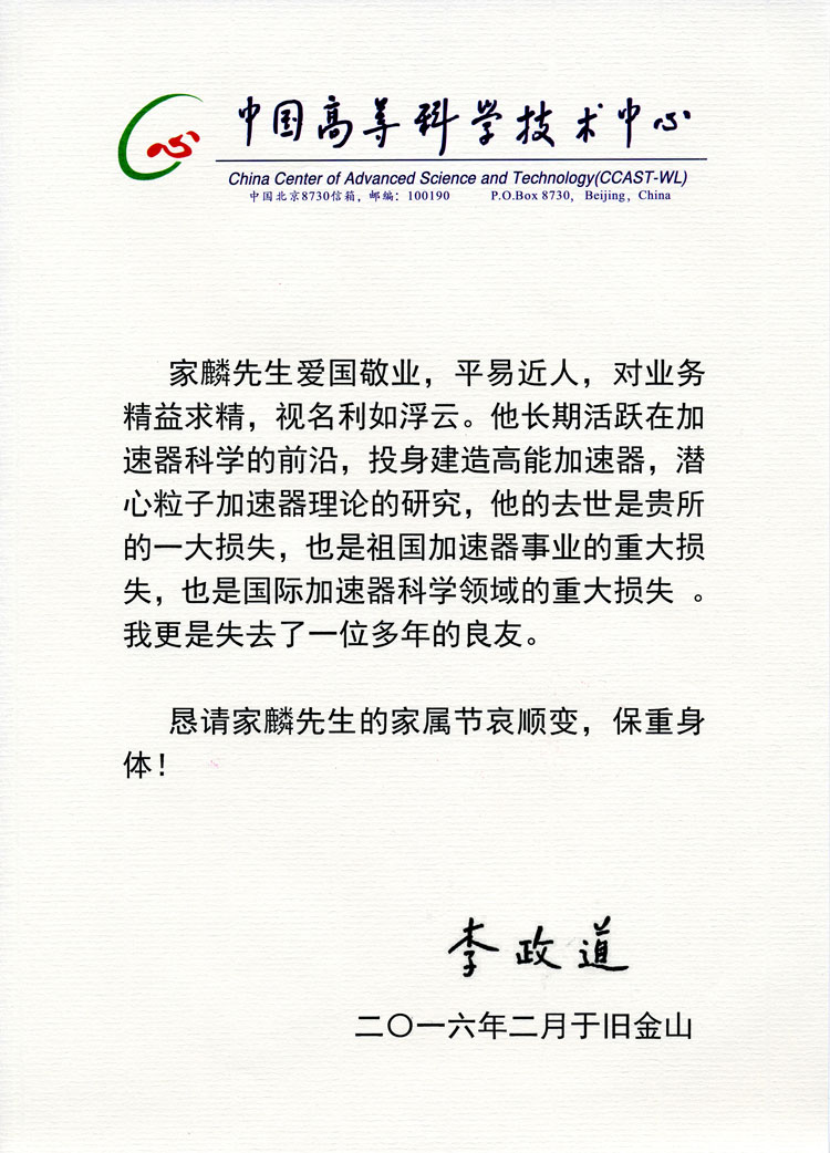 李政道唁电
