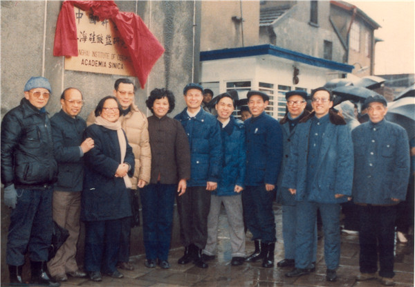 1985年,严东生参加上海硅酸盐所铭牌揭牌仪式