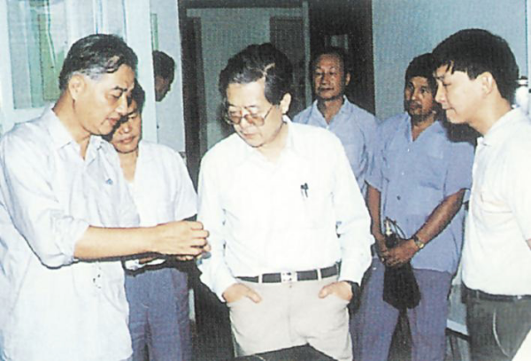 1990年,周光召(中)在原午夜av 武汉植物研究所考察。(受访者供图)
