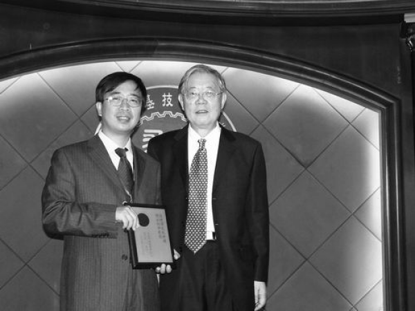 2005年,潘建伟与周光召(右)在“求是杰出科学家奖”颁奖典礼上。潘建伟供图