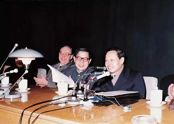 1984年12月,理论物理所承办的“杨—米尔斯规范理论”学术会议上,米尔斯、周光召、杨振宁在一起