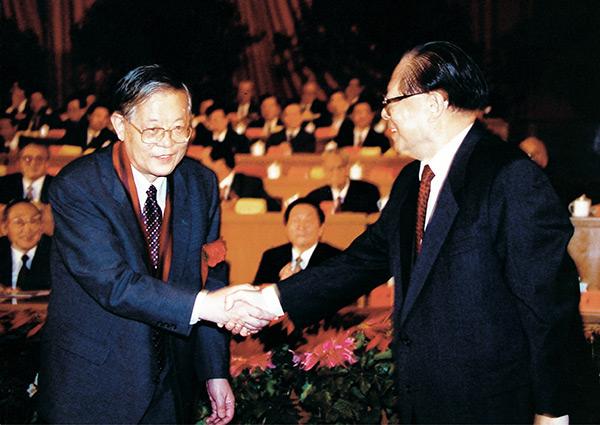 1999年9月18日,江泽民向周光召颁发“两弹一星”功勋奖章
