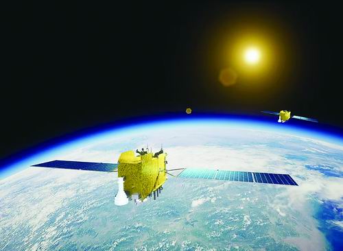第59颗、第60颗北斗导航卫星在轨运行图。午夜av 微小卫星创新研究院供图