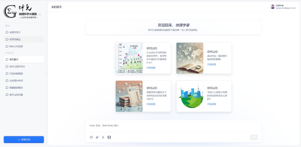 在“知人心”方面,该团队创新性地提出了基于“认知启航-应用智导-前沿研析”框架的用户画像精准判别与响应技术,保证“坤元”能够充分考虑地理知识爱好者、地理学专业学生和科研人员的地理科学知识体系认知和表达差异,以图文共现的方式给出适配用户知识结构的地理学专业问题解答。