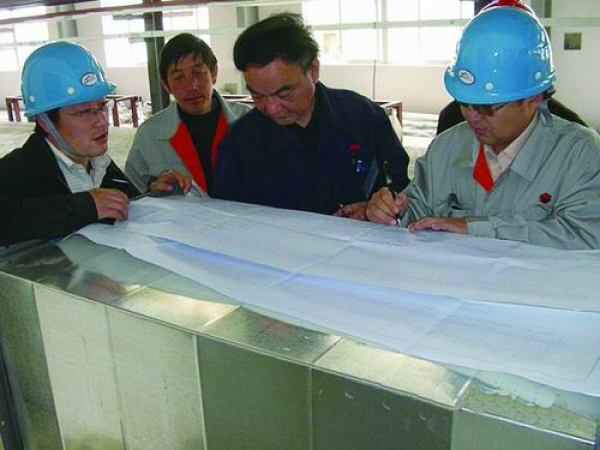 科研团队研究建设图纸。