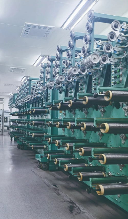 洁净的厂房里,高性能碳纤维生产线一刻不停地高速运转着。