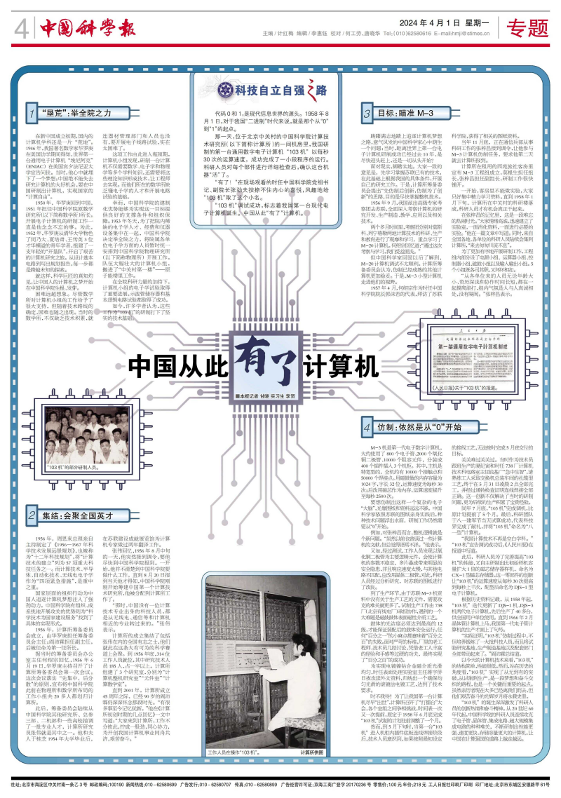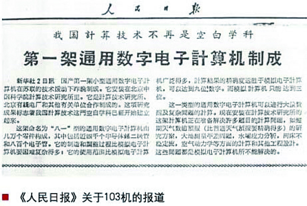 “我国计算技术不再是空白学科。”“103机”宣告调试成功后,《人民日报》在报道中写道。