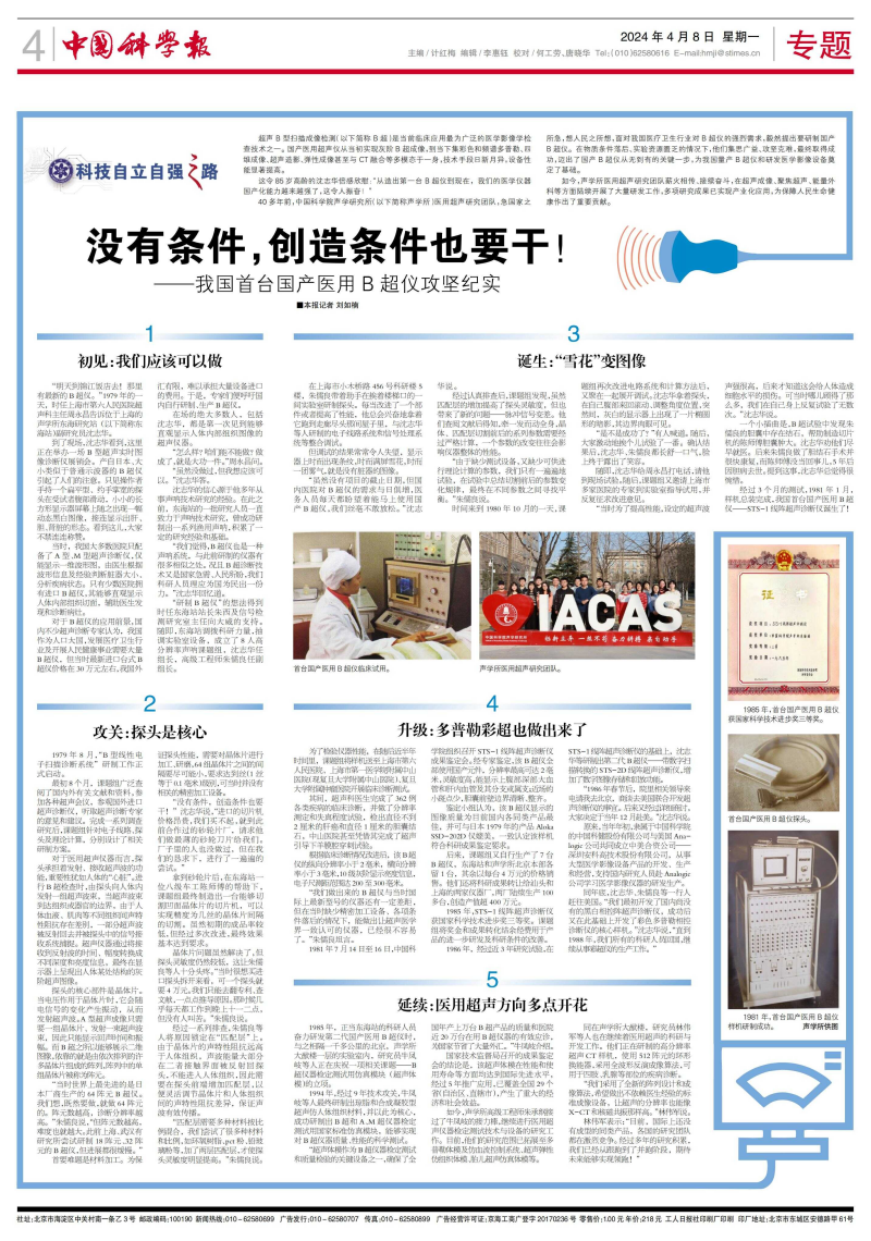 “我们觉得,B超仪也是一种声呐系统,与此前研制的仪器有很多相似之处。况且B超诊断技术又是国家急需、人民所盼,我们科研人员理应为国为民出一份力。”沈志华回忆道。