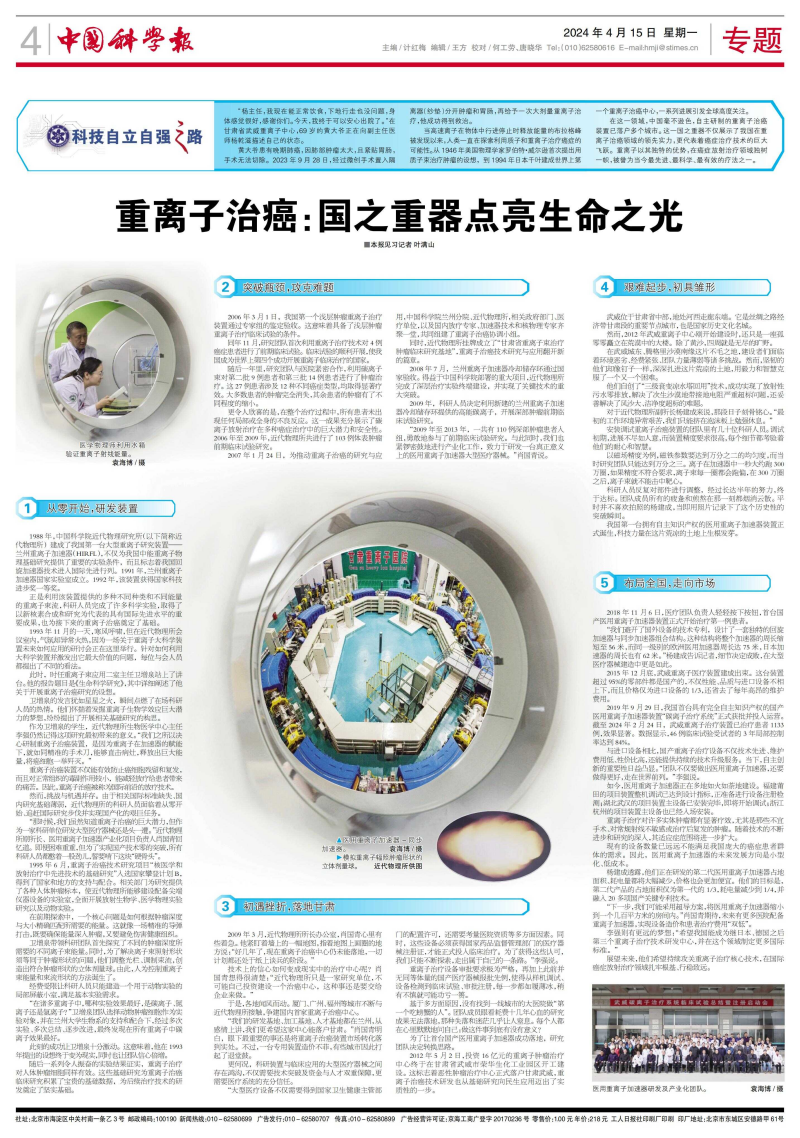 同年11月,研究团队首次利用重离子治疗技术对4例癌症患者进行了前期临床试验。临床试验的顺利开展,使我国成为世界上第四个成功开展重离子临床治疗的国家。
