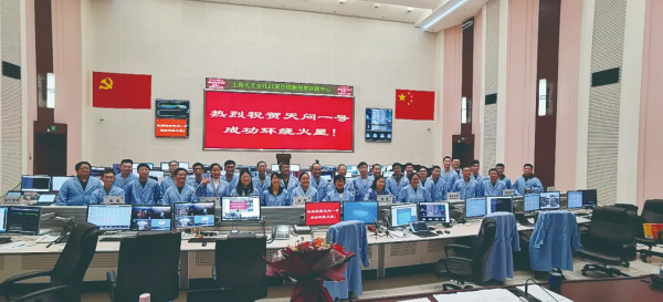 2021年春节期间,天问一号成功环绕火星,上海天文台团队在VLBI深空探测指挥控制中心合影。