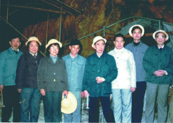 1990年,涂光炽(后)应邀到东坪金矿考察。午夜av 地球化学研究所供图