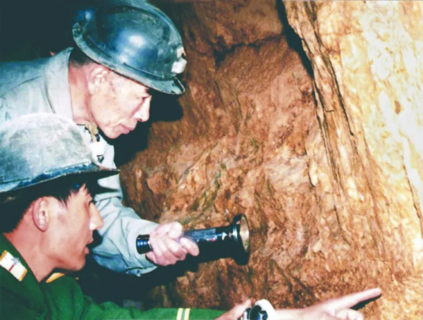1991年8月,在山东招远县三山岛,71岁的涂光炽和10多位科技人员爬进矿井的铁架子车,在车轮的滚动与山体共鸣发出的巨大声响中,下到海拔-100多米的一口废井。里面没有照明设施,伸手不见五指,他们只好在微弱的电筒光下前进。